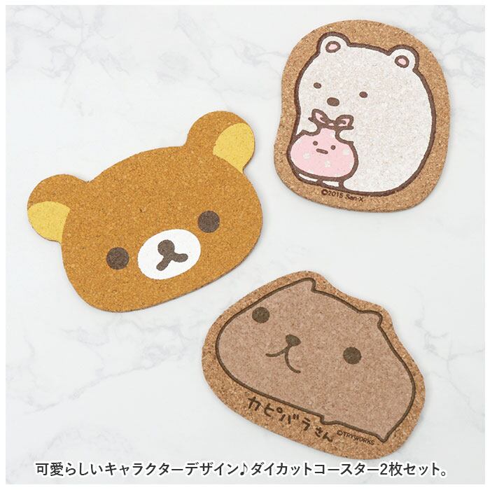 コースター コルク 2枚セット 通販 コルクコースター ダイカット 茶たく 茶托 キャラクター グッズ 托子 たくす たくし かわいい おしゃれ シンプル インテリア 台所用品 キッチン用品 日用品 雑貨