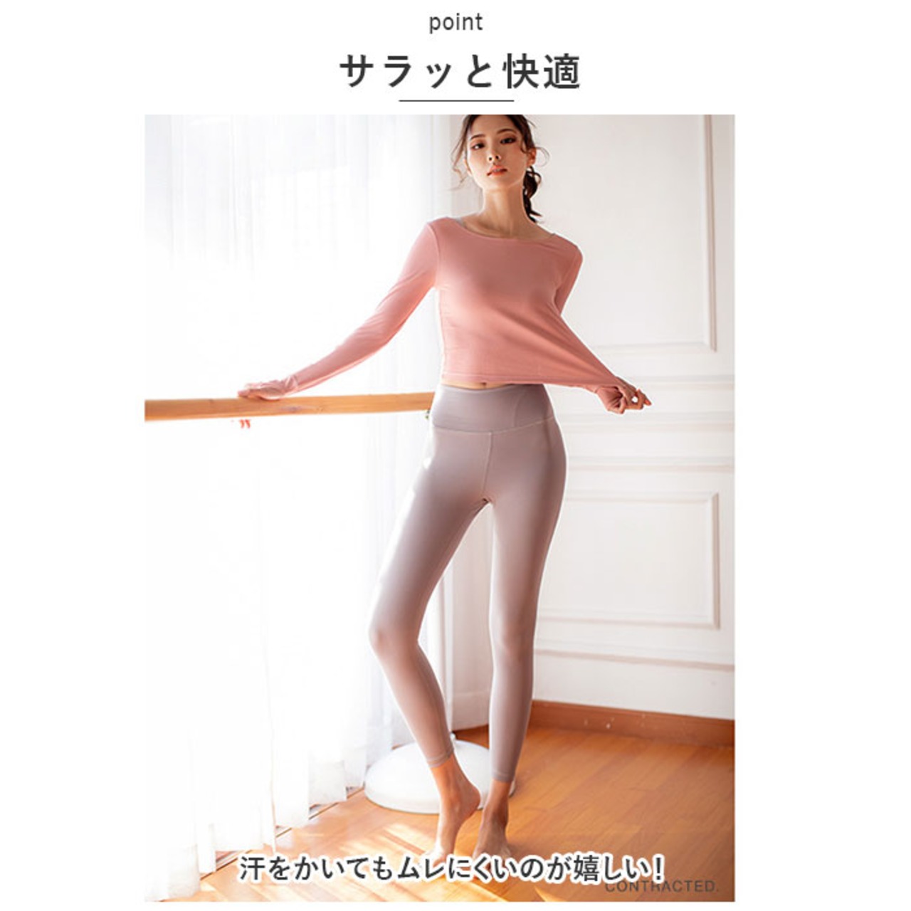 ・足首まで覆うレギンスタイプのヨガウェア。