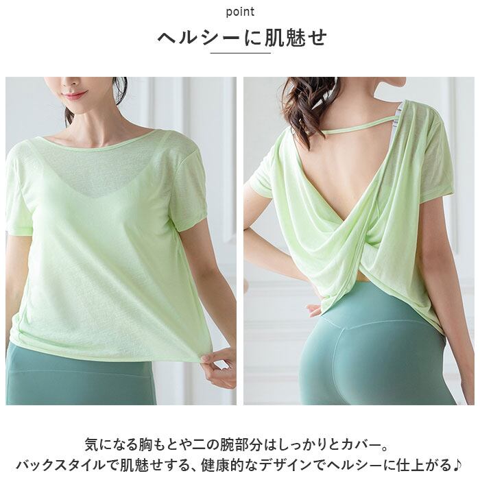 ・バックスタイルが魅力。シンプルTシャツで、ヘルシーに肌魅せ♪「ヨガトップス」が登場。
