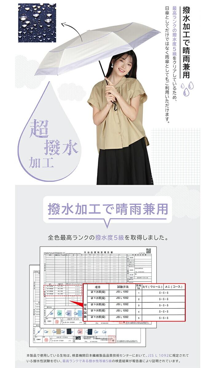 ・晴れの日も大活躍な日差し&UV対策機能付き。UVカット率・遮光率ともに100%カット効果で真夏の厳しい日差しにも対応。