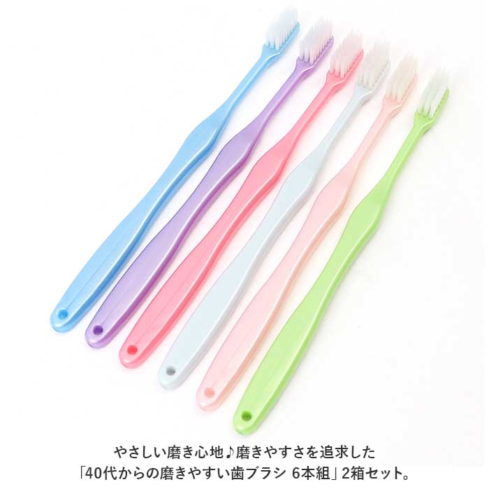 ・やさしい磨き心地♪磨きやすさを追求した「40代からの磨きやすい歯ブラシ 6本組」2箱セット。