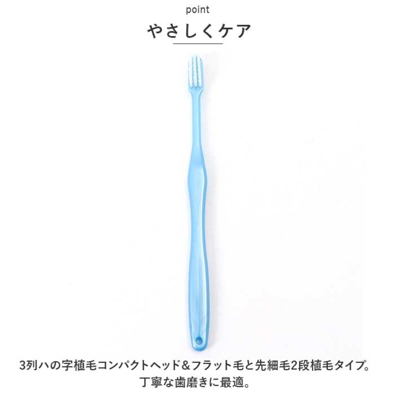 ・3列ハの字植毛コンパクトヘッド&フラット毛と先細毛2段植毛タイプ。丁寧な歯磨きに最適。