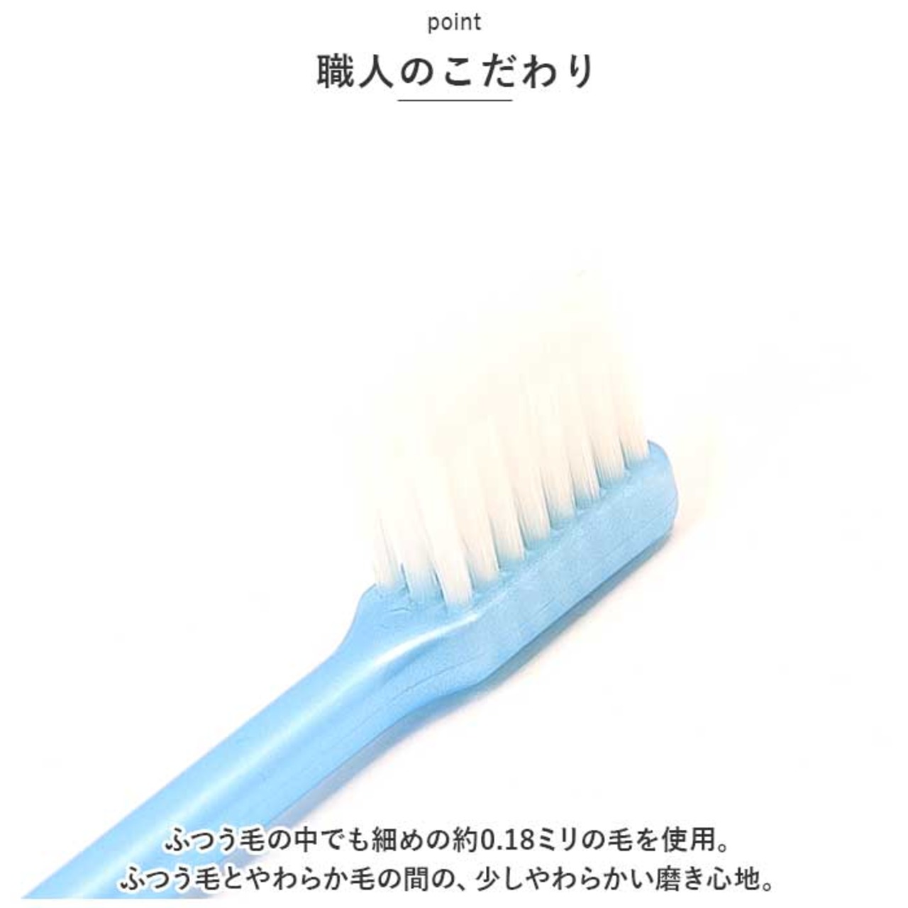 ・ふつう毛の中でも細めの約0.18ミリの毛を使用。ふつう毛とやわらか毛の間の、少しやわらかい磨き心地。