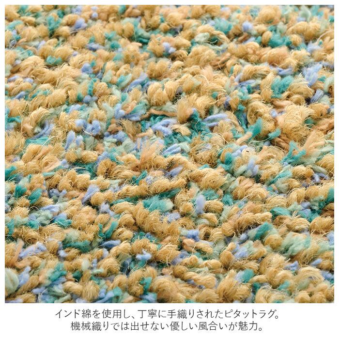 ・インド綿を使用し、丁寧に手織りされたピタットラグ。機械織りでは出せない優しい風合いが魅力。