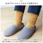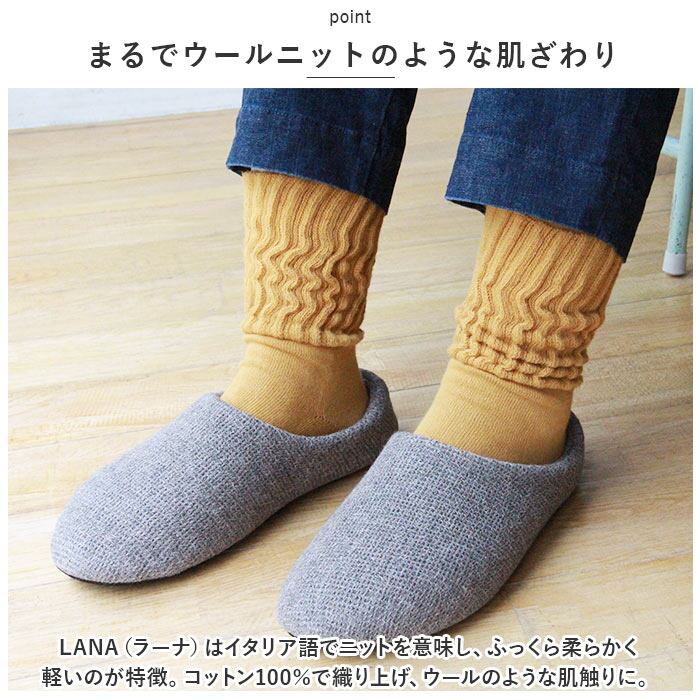 ・LANA(ラーナ)はイタリア語でニットを意味し、ふっくら柔らかく軽いのが特徴。コットン100%で織り上げ、ウールのような肌触りに。