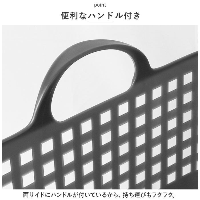 ・軽量で柔軟性のある素材で作られたバスケットは、中に入れるものを傷つけにくい!単体でもセットでも使いやすいスクエアタイプ。ハンドル耐荷重は約5kg。