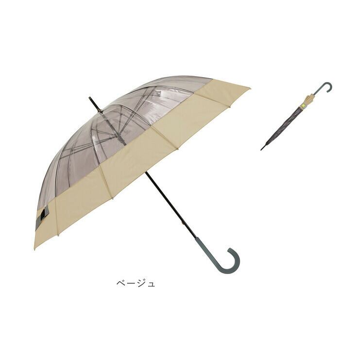 ・透明感のあるビニール素材をくすみカラーの生地で縁取ったユニークな切り継ぎデザイン。コンビニのビニール傘では満足できないお洒落女子に最適!