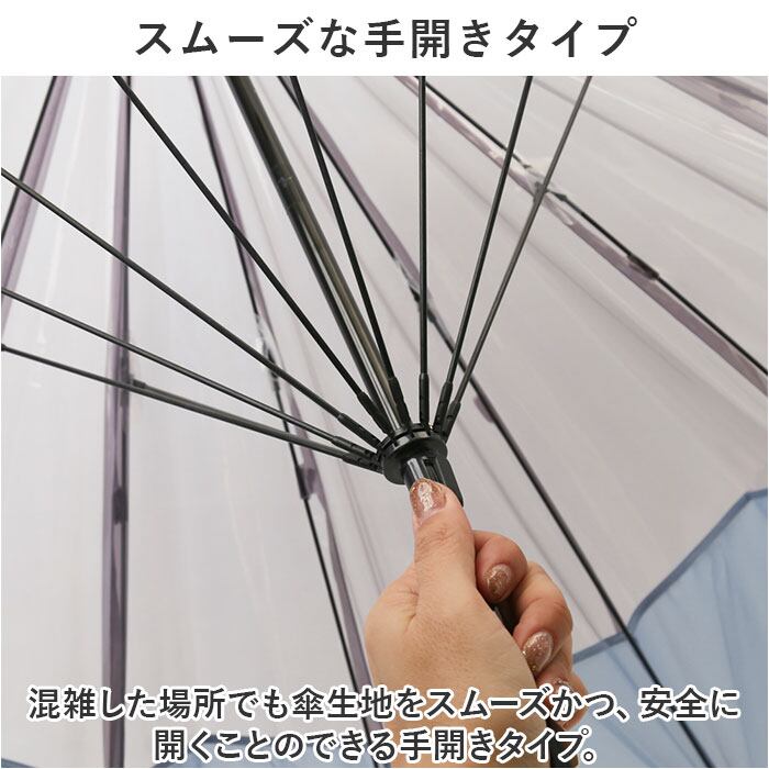 ・混雑した場所でも傘生地をスムーズかつ、安全に開くことのできる手開きタイプ。