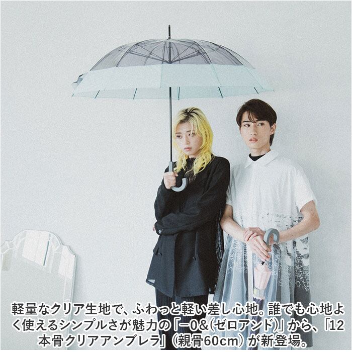 ・軽量なクリア生地で、ふわっと軽い差し心地。誰でも心地よく使えるシンプルさが魅力の「-0&(ゼロアンド)」から、「12本骨クリアアンブレラ」(親骨60cm)が新登場。
