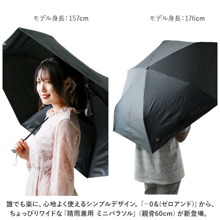 ・誰でも楽に、心地よく使えるシンプルデザイン。「-0&(ゼロアンド)」から、ちょっぴりワイドな「晴雨兼用 ミニパラソル」(親骨60cm)が新登場。