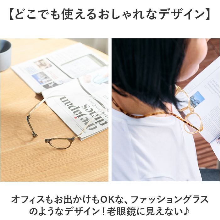 ・オフィスもお出かけもOKな、ファッショングラスのようなデザイン!老眼鏡に見えない♪
