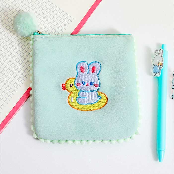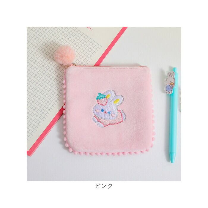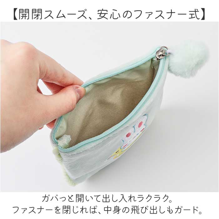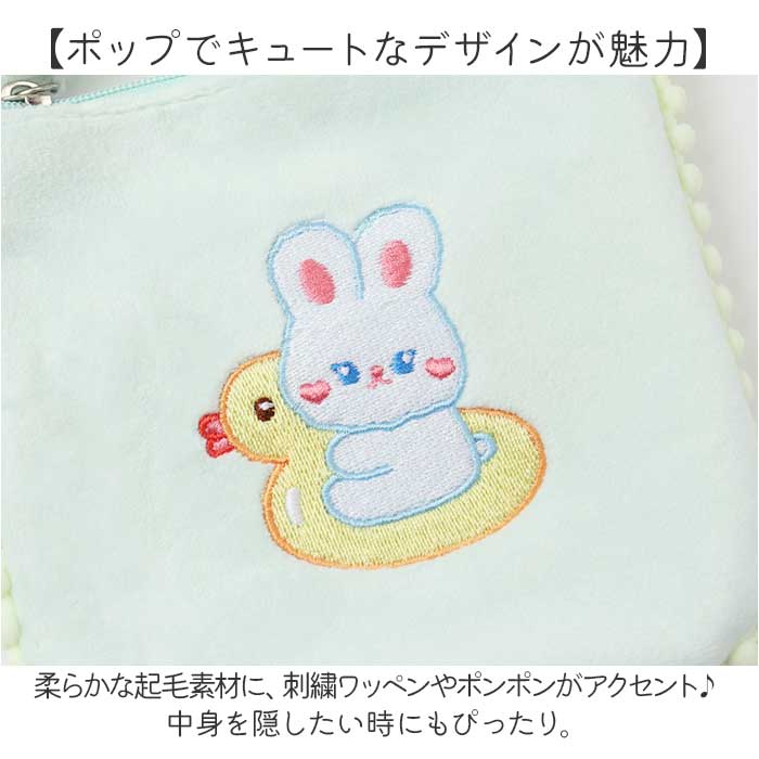 ・柔らかな起毛素材に、刺繍ワッペンやポンポンがアクセント♪中身を隠したい時にもぴったり。