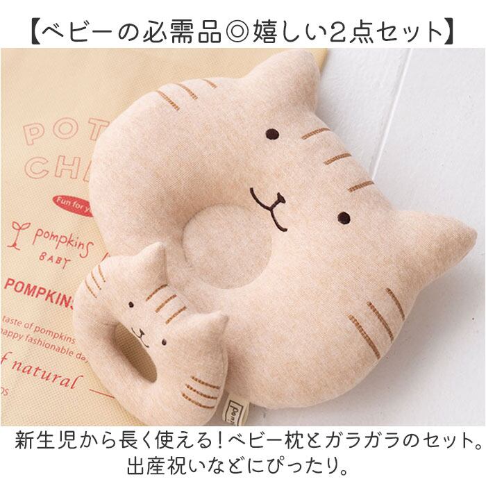 ・新生児から長く使える!ベビー枕とガラガラのセット。出産祝いなどにぴったり。