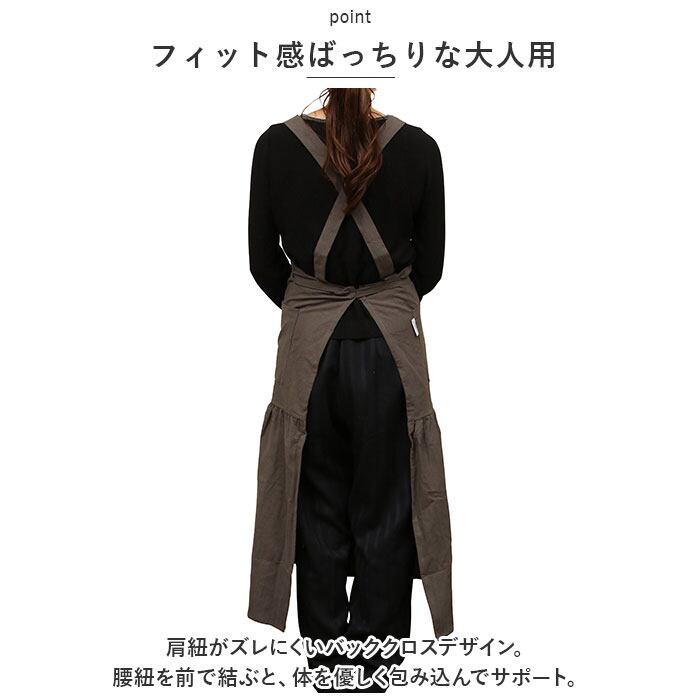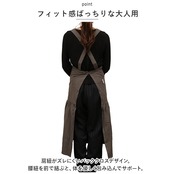・肩紐がズレにくいバッククロスデザイン。腰紐を前で結ぶと、体を優しく包み込んでサポート。胸の部分を折り込めば、ギャルソンエプロンに変身☆