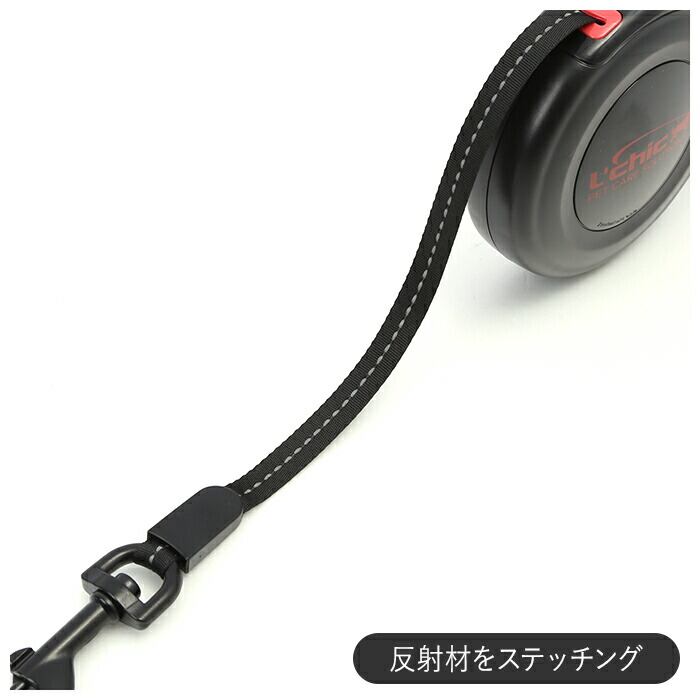 ・テープ状のリード部には反射材をステッチング。夜間の散歩でもライトが当たるとキラッと光るので、ワンちゃんや飼い主さんも安心。