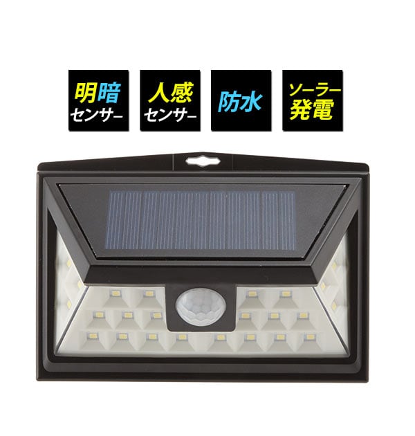 ソーラーライト 屋外 通販 センサーライト 24LED ライト 防水 人感センサー 玄関入口 玄関周り 駐車場 ガレージ 軒先 庭先 自動点灯 壁掛け 外灯 ガーデンライト 庭園灯 コンパクト 8時間フル充電 弱光モード センサーモ