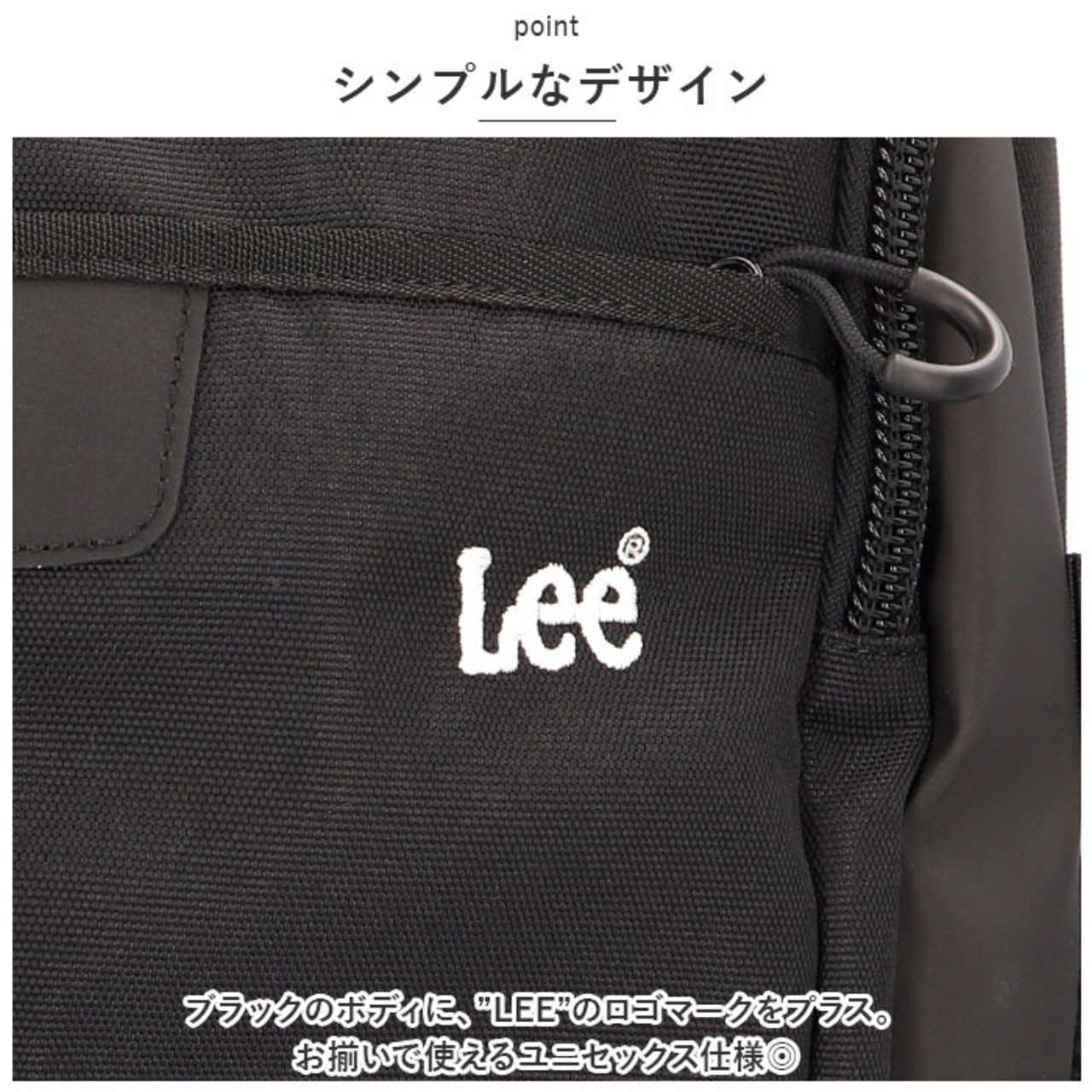 ・ブラックのボディに、”LEE”のロゴマークをプラス。お揃いで使えるユニセックス仕様◎