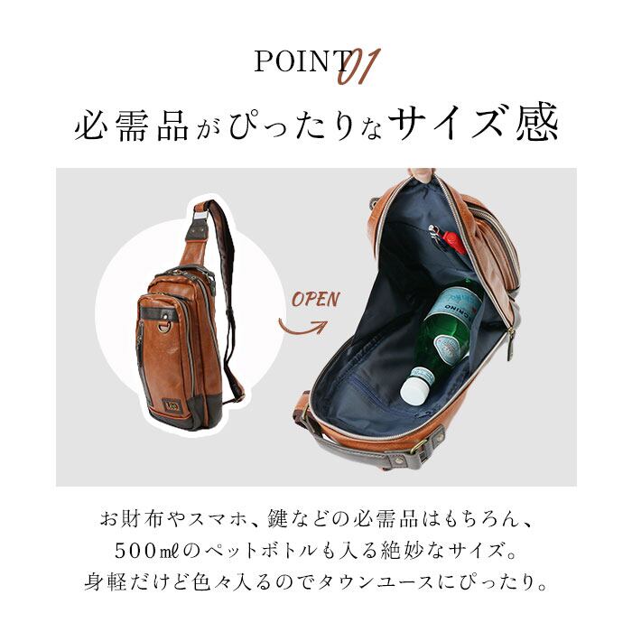 ・タブレットや500mlのペットボトルなど、お出かけに必要な物が収納できるタウンユースにぴったりのアイテム。マチがしっかりあるので安心!