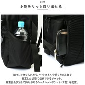 ・リュックを背負ったままでも、背面ファスナーから荷物の取り出しが可能。旅行やレジャーシーンでの移動中も便利◎