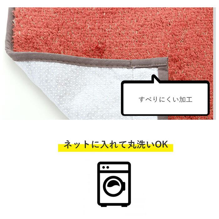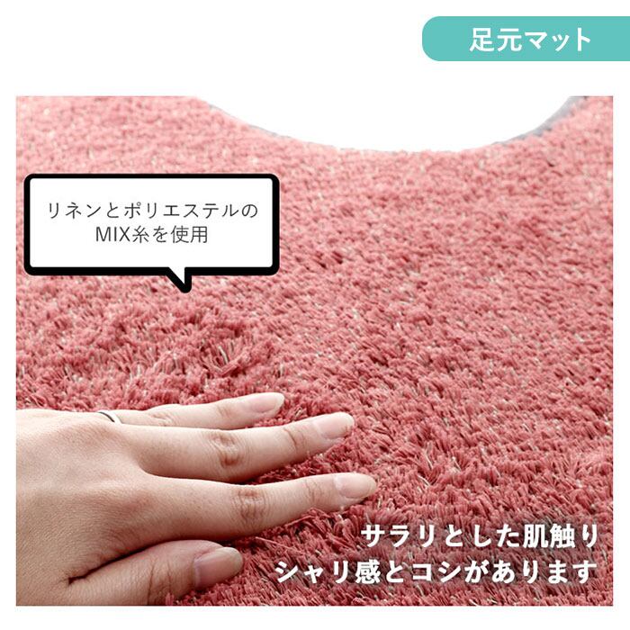 ・マットは表面にふっくらと毛足のしっかりしたパイル糸を使用。ふわふわの足触りで快適♪裏面は滑りにくい加工がされていてマットのズレを直す手間がなく楽ちん♪