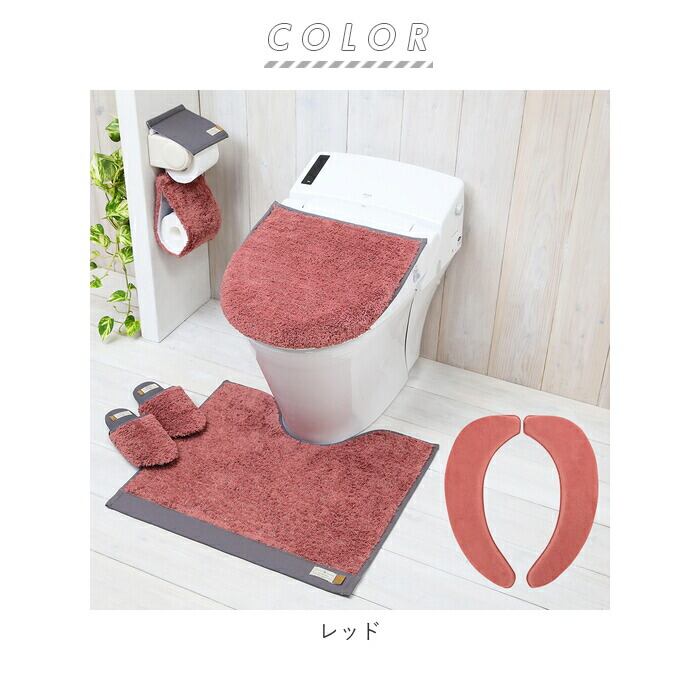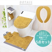 ・ふんわりとした肌触りのパイル糸を使用した、スリッパ・フタカバー・ペーパーホルダーカバー・マットと便座シートの5点セット。
