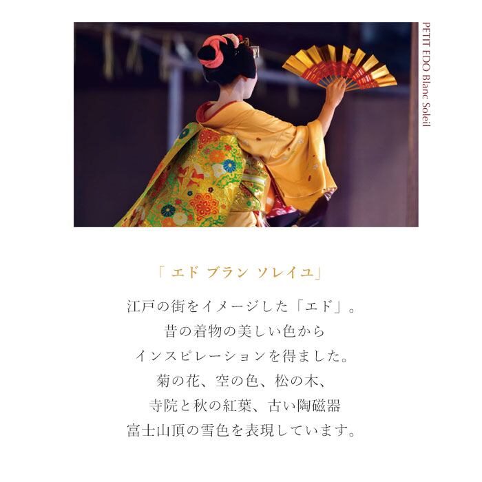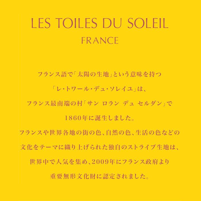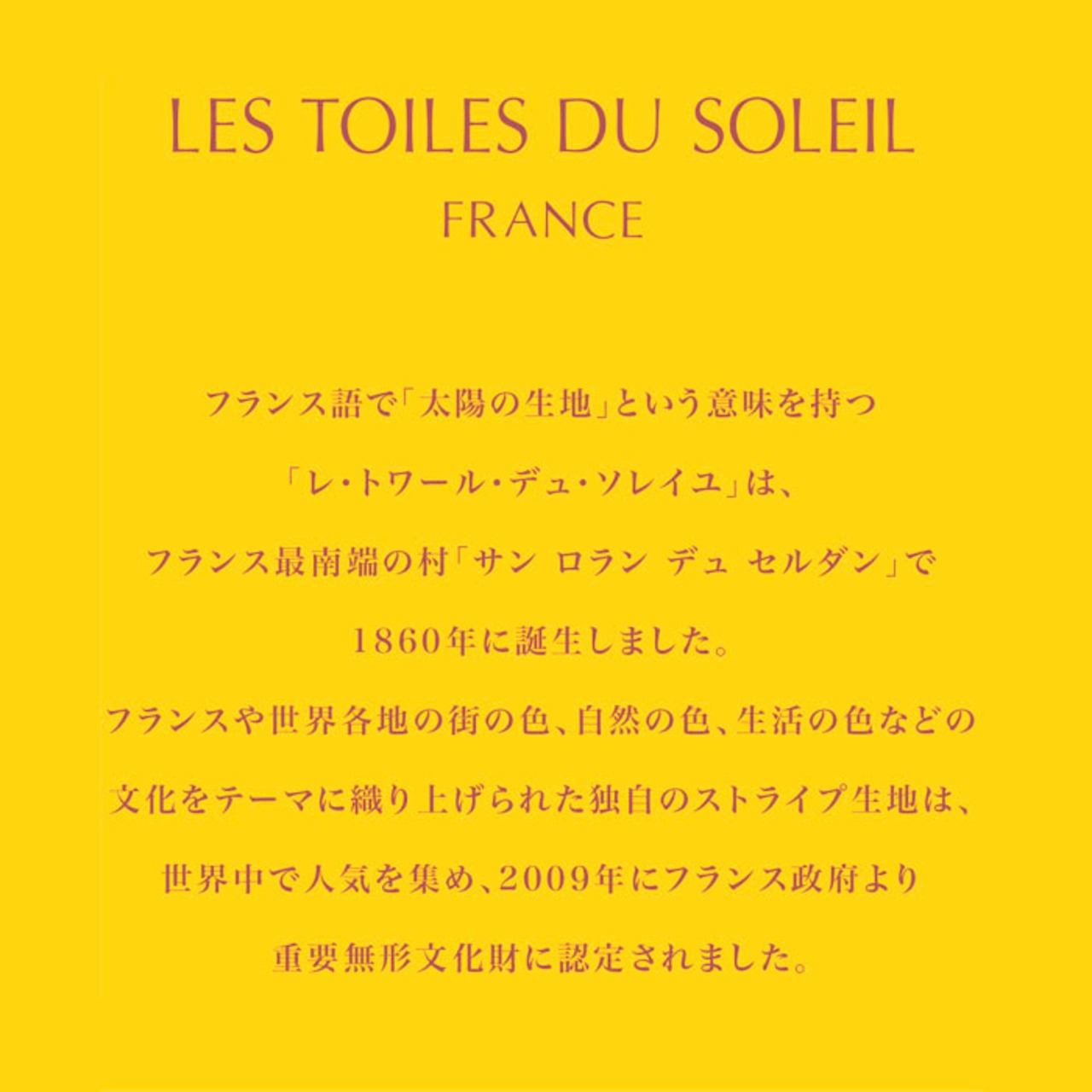 ・「レ・トワール・デュ・ソレイユ」とは、フランス語で「太陽の生地」という意味。フランスや世界各地の街の色、自然の色、生活の色などの文化をテーマに織り上げられた独自のストライプ生地は、世界中で人気を集め、重要無形文化財に認定。
