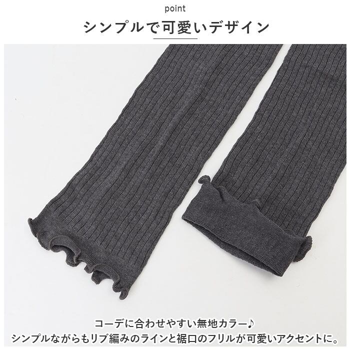 ・コーデに合わせやすい無地カラー♪シンプルながらもリブ編みのラインと裾口のフリルが可愛いアクセントに。