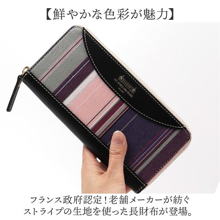 ・フランス政府認定!老舗メーカーが紡ぐストライプの生地を使った長財布が登場。
