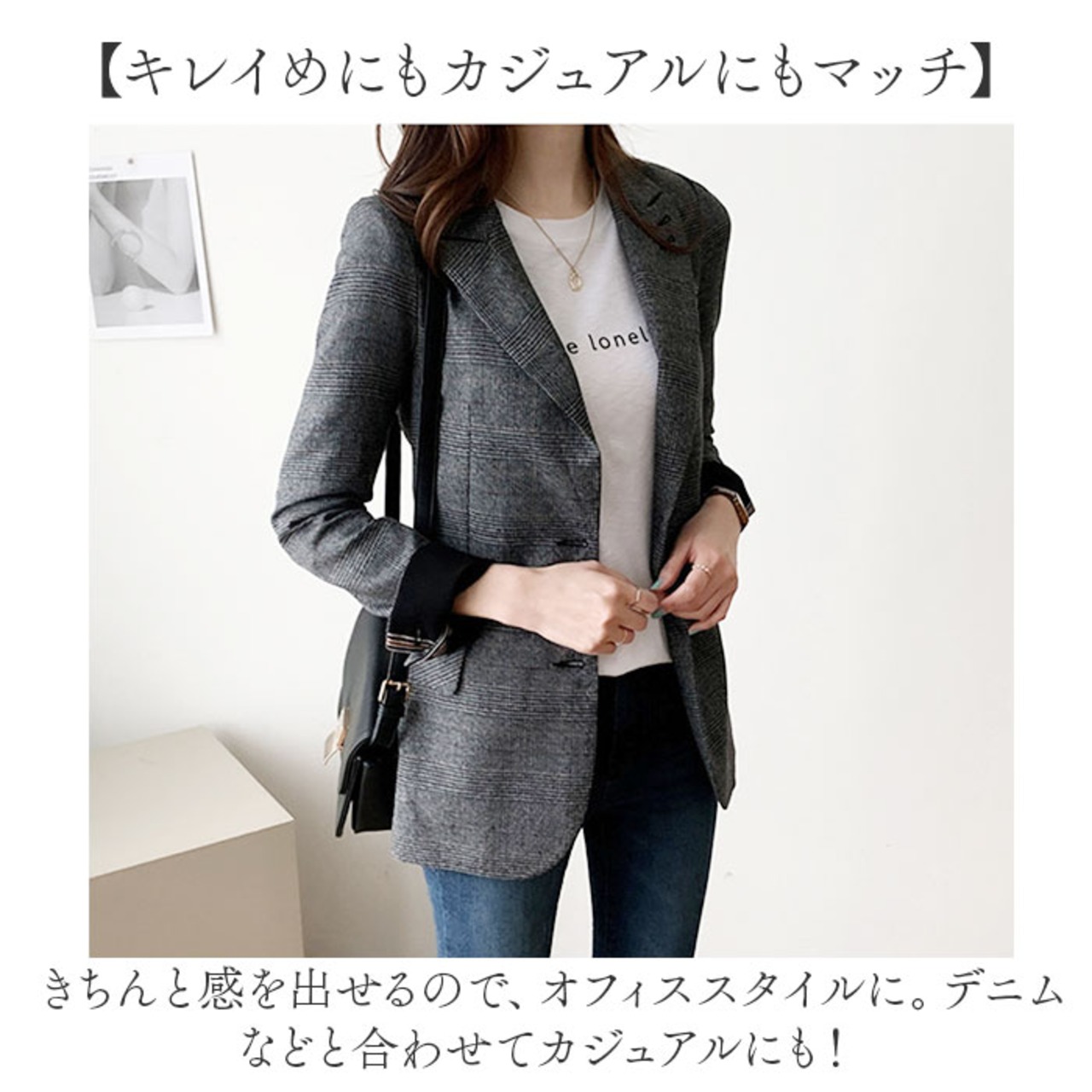 ・きちんと感を出せるので、オフィススタイルに。デニムなどと合わせてカジュアルにも!