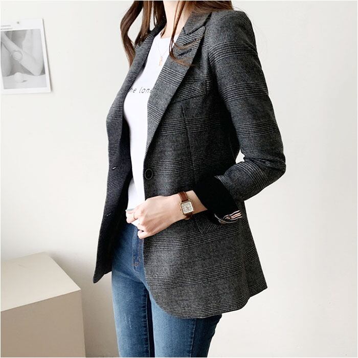 ・程よく存在感のある1枚♪通勤もお出かけもお任せ!レディース用「チェック柄ジャケット」。