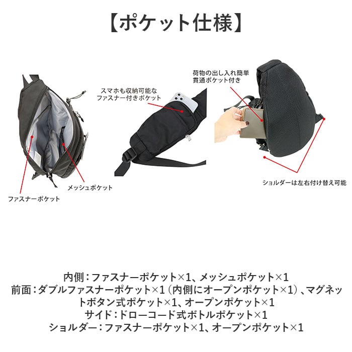 ※ショルダー:ファスナーポケット×1、オープンポケット×1