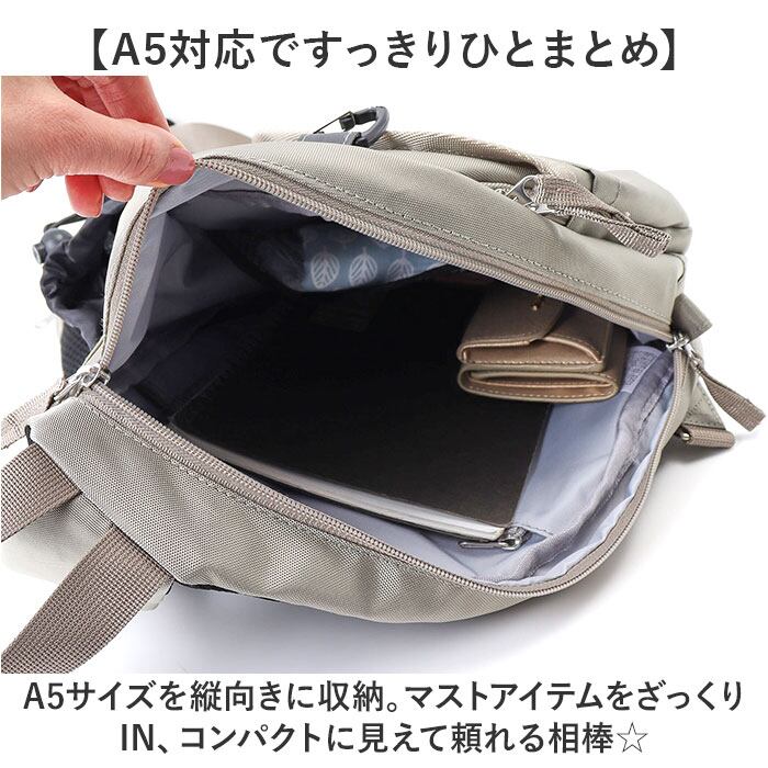 ・A5サイズを縦向きに収納。マストアイテムをざっくりIN、コンパクトに見えて頼れる相棒☆