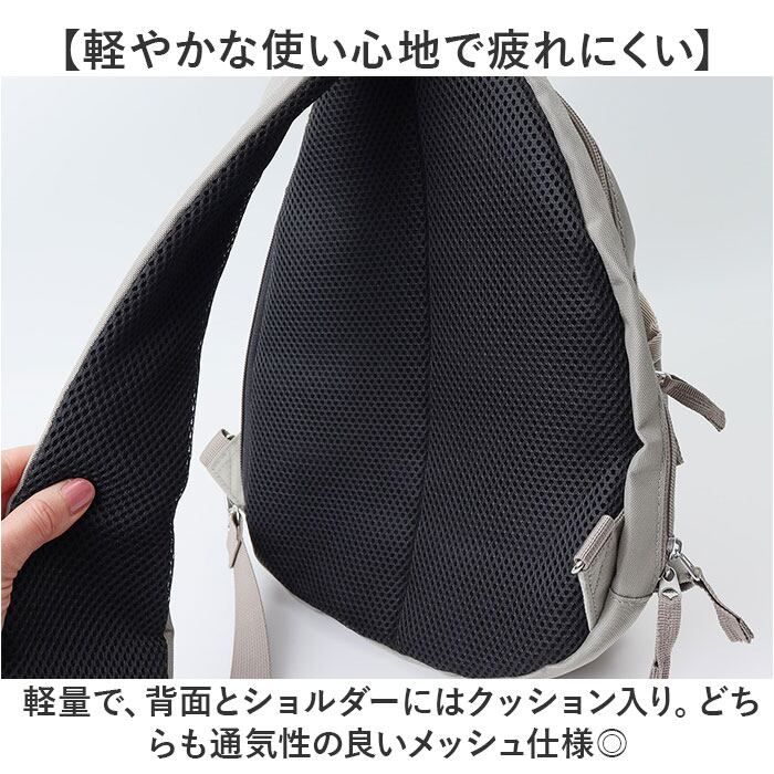 ・軽量で、背面とショルダーにはクッション入り。どちらも通気性の良いメッシュ仕様◎