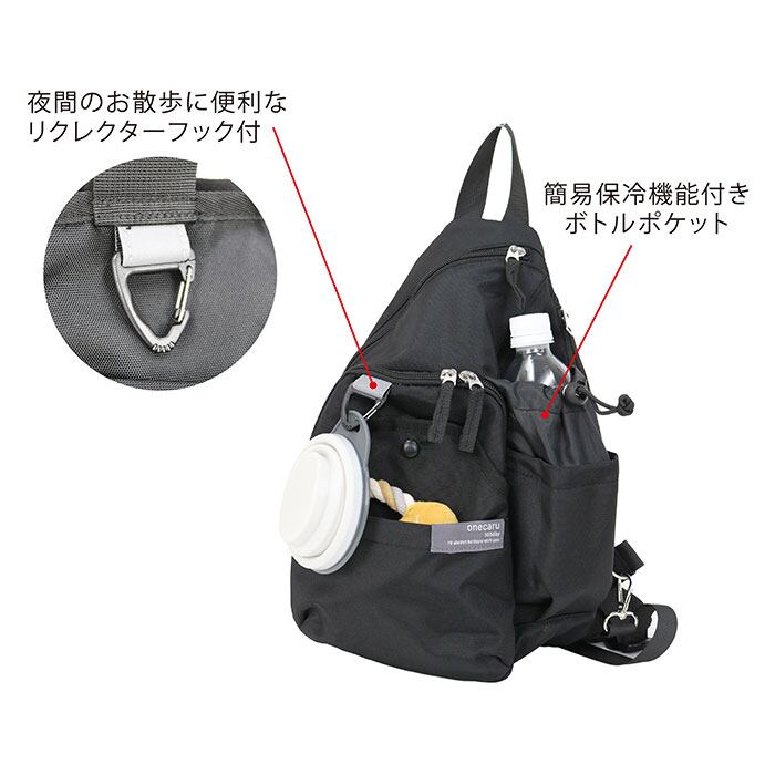 ・飼い主さんの、お散歩時の負担を軽減する機能を詰め込んだ「ワンかるお散歩ボディバッグ」。