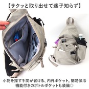 ・小物を探す手間が省ける、内外ポケット。簡易保冷機能付きのボトルポケットも装備◎