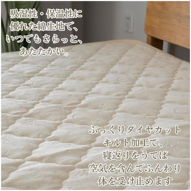 ・上質な綿100%のキルト地を使用しており、肌触りがなめらかで心地よい寝心地を実現!