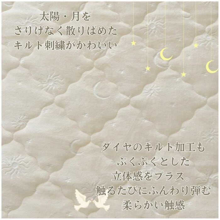 ・上質な綿100%のキルト地を使用しており、肌触りがなめらかで心地よい寝心地を実現!