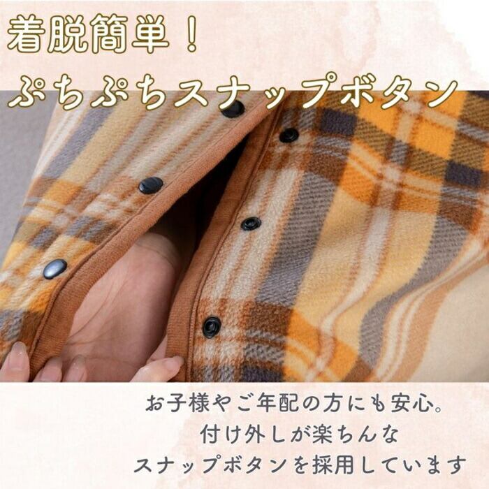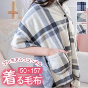 着る毛布 ボタン付きチェック柄ブランケット 50×160cm
