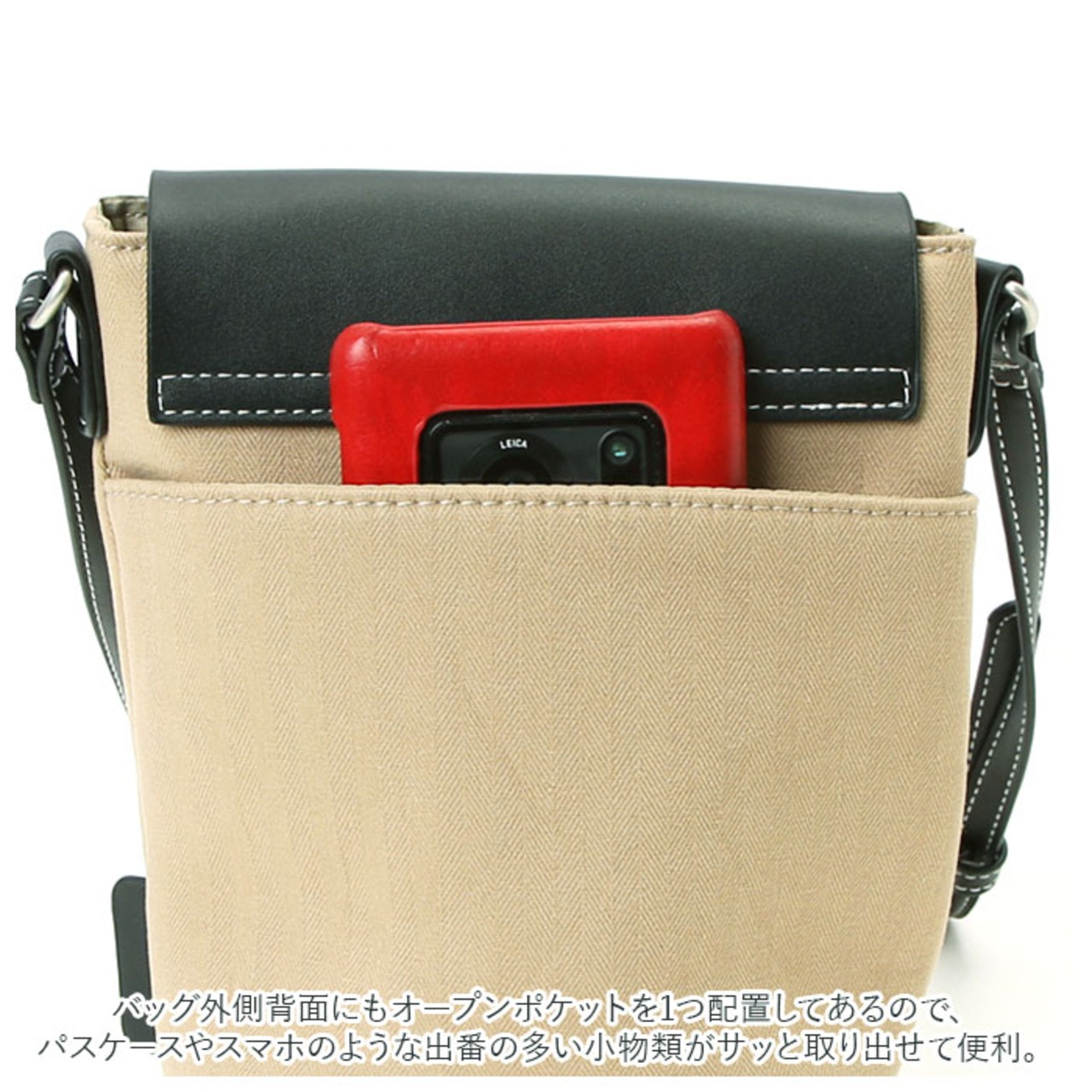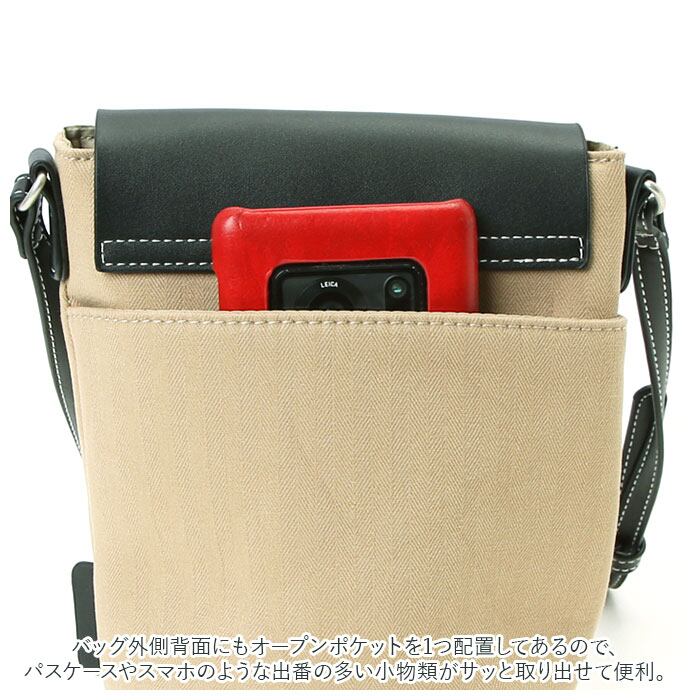 ・バッグ外側背面にもオープンポケットを1つ配置してあるので、パスケースやスマホのような出番の多い小物類がサッと取り出せて便利。
