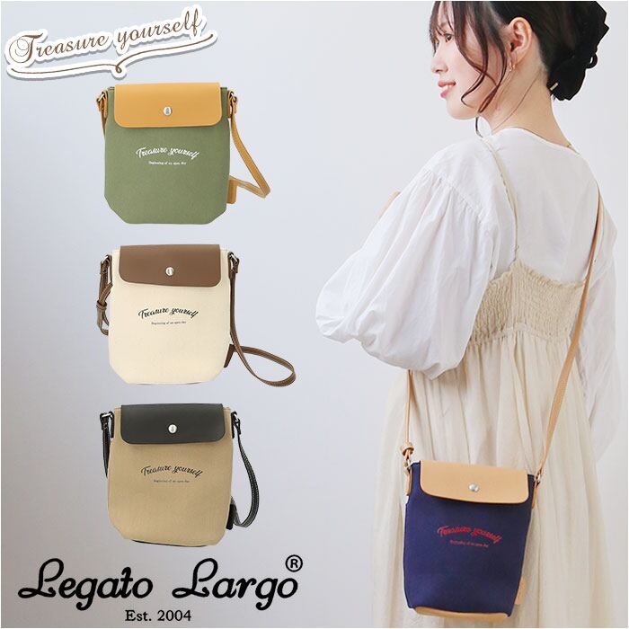 レガートラルゴ ショルダーバッグ LG-E1502 Legato Largo 通販 ショルダーバック ミニショルダーバッグ レディース スマホショルダー 大容量 コンパクト 大人 かわいい おしゃれ シンプル ナチュラル カジュアル 綿 コットン 旅行 トラベル メッセージ ヘリンボーンコットン