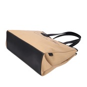 ・ナチュラルな風合いのコットン素材に、落ち着いた色味のフェイクレザーパーツを合わせることで、カジュアルな雰囲気ながら大人の女性が持てる上品な印象に。