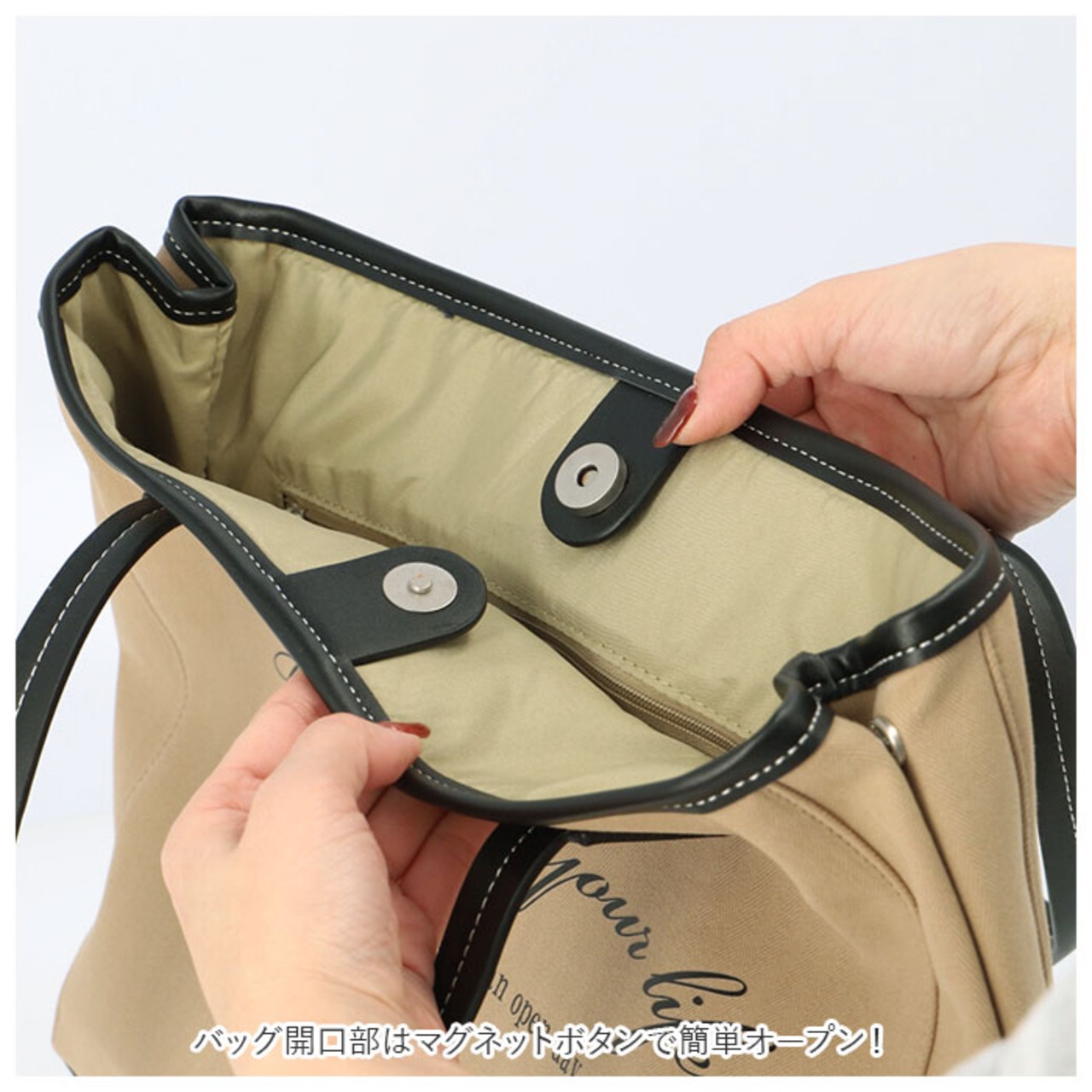 ・バッグ開口部はマグネットボタンで簡単オープン!中の小物が取り出しやすく、外出先でのプライバシーも程よくキープ。