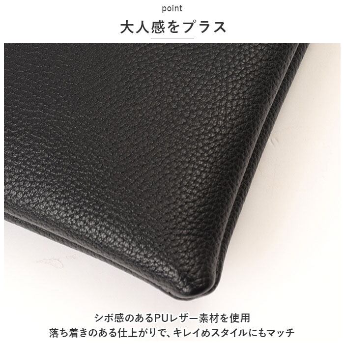 ・シボ感のあるPUレザー素材を使用。落ち着きのある仕上がりで、キレイめスタイルにもマッチ。