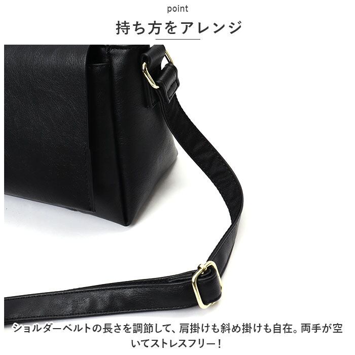 ・ショルダーベルトの長さを調節して、肩掛けも斜め掛けも自在。両手が空いてストレスフリー!