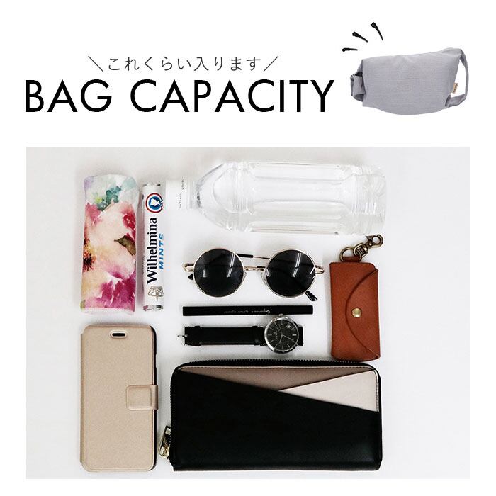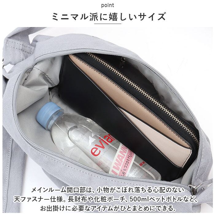 ・長財布や化粧ポーチ、500mlペットボトルなど、お出掛けに必要なアイテムがひとまとめにできる、使い勝手のいいサイズ感。