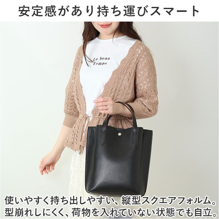 ・しっとり柔らかなPU素材を使い、落ち着きのある仕上がりに。年代問わず持ち歩きやすく、キレイめコーデにもマッチ。
