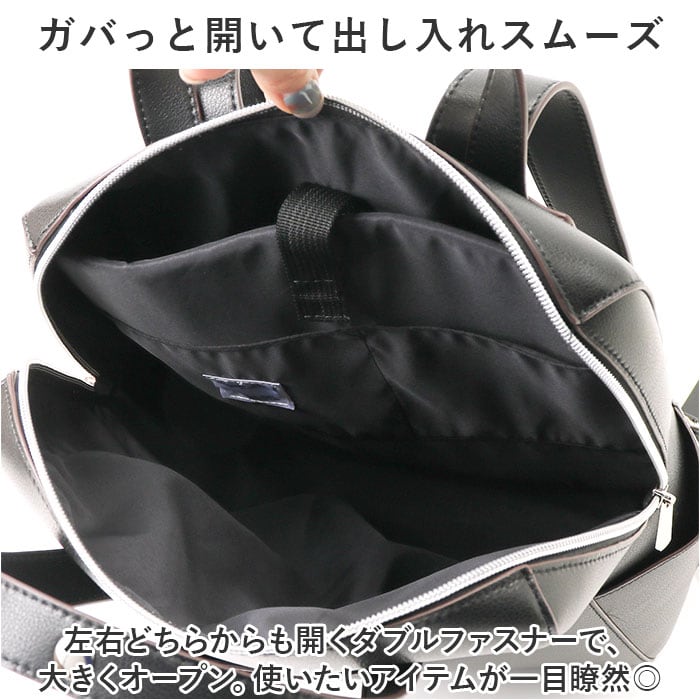・左右どちらからも開くダブルファスナーで、大きくオープン。使いたいアイテムが一目瞭然◎