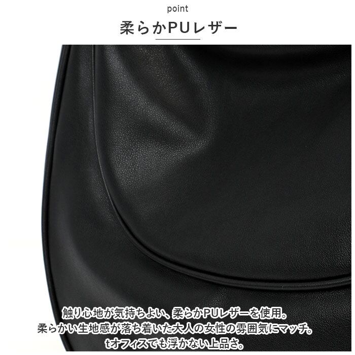 ・触り心地が気持ちよい、柔らかPUレザーを使用。柔らかい生地感が落ち着いた大人の女性の雰囲気にマッチ。オフィスでも浮かない上品さ。
