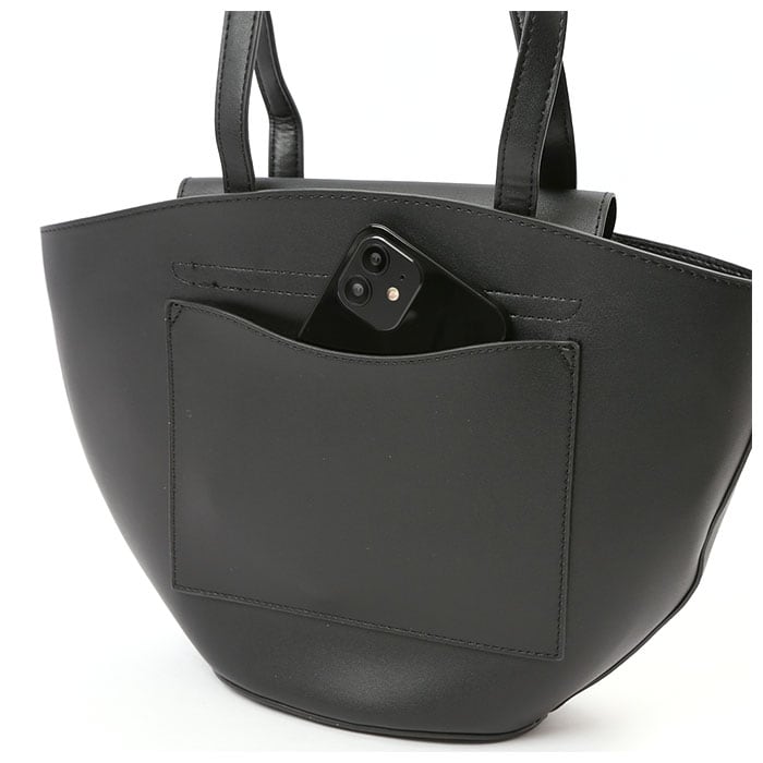 ・底がコロンと丸く、間口が貝殻のようにふわっと広がったユニークなフォルムで、バッグの中の小物が見やすく取り出しもスムーズ。