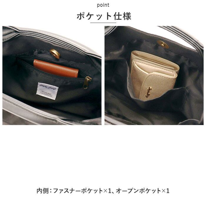 ・長財布や500mlペットボトル+@が入るサイズ感。小物が迷子にならない内ポケット付き。